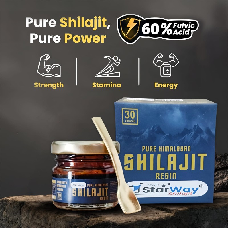 • TreAD StarWay Pure Himalayan Shilajit Resin – Natural Energy Booster with 60% Fulvic Acid – Ayurvedic Health Supplement to Boost Testosterone, Increase Stamina & Strength, Reduce Stress & Fatigue – 30g